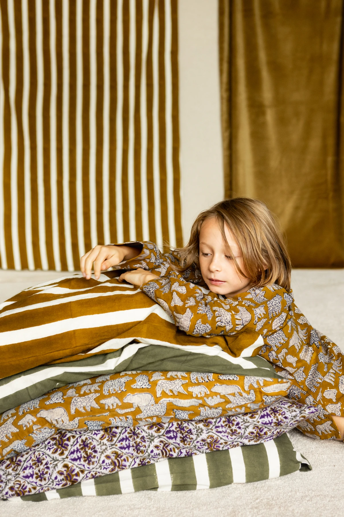 Voici Takiya, notre taie d’oreiller confectionnée dans un coton de qualité pour assurer douceur et confort aux petits comme aux grands. Associez-là à notre housse de couette pour créer une ambiance chaleureuse dans votre chambre !