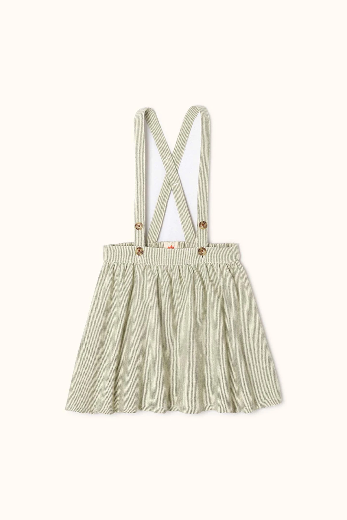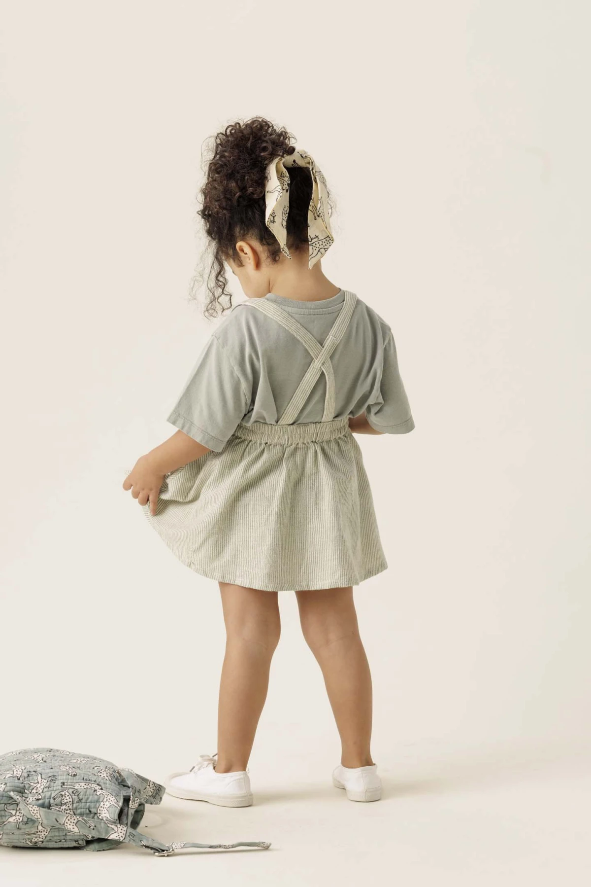 Découvrez la jupe courte JINDARA en khadi de coton, évasée et longueur mi-cuisses. Ses bretelles croisées au dos, réglables sur deux niveaux grâce à des boutons écaille, assurent un ajustement parfait. Taille plate sur le devant et élastiquée au dos pour confort et style au quotidien.