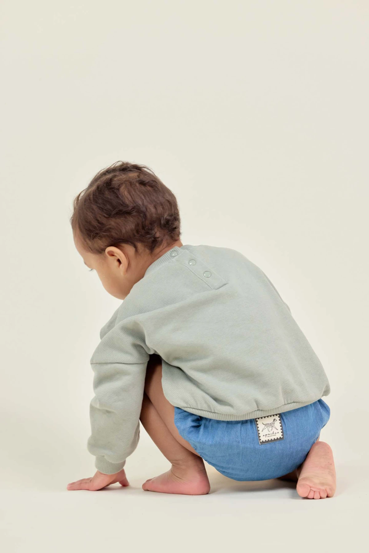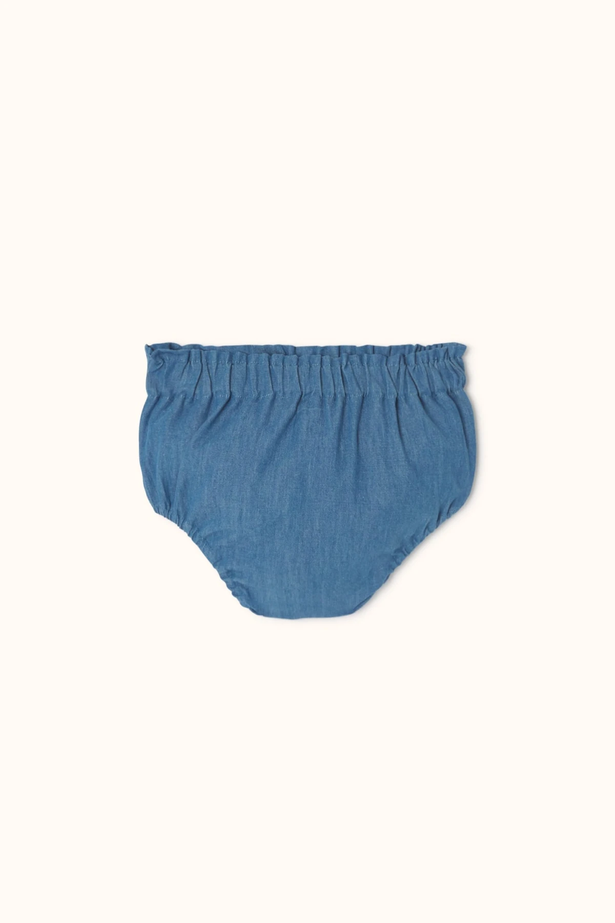 Craquez pour le bloomer bouffant TALLUM en chambray de coton, confortable et pratique. Sa taille et ses cuisses élastiquées assurent un maintien parfait tout en laissant une totale liberté de mouvement. Un indispensable pour les looks décontractés et stylés des enfants.