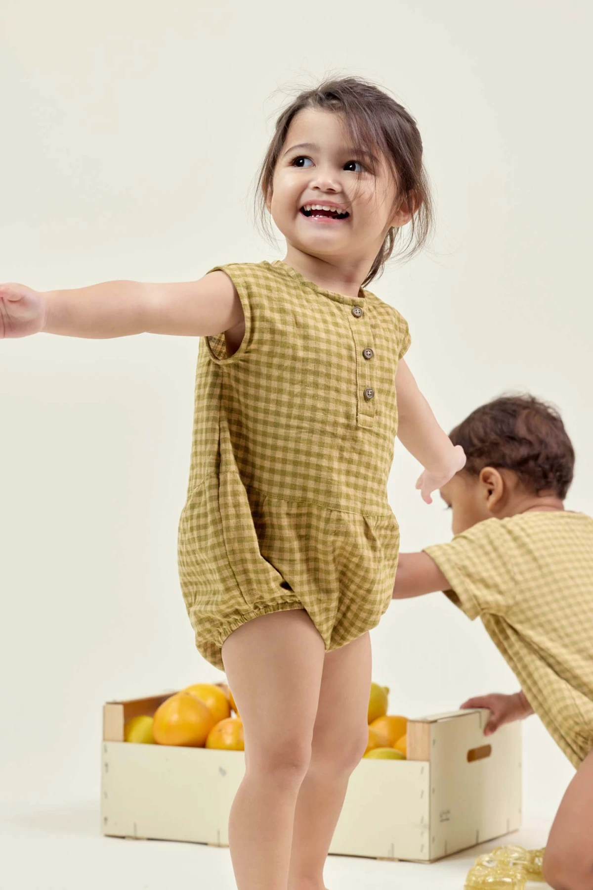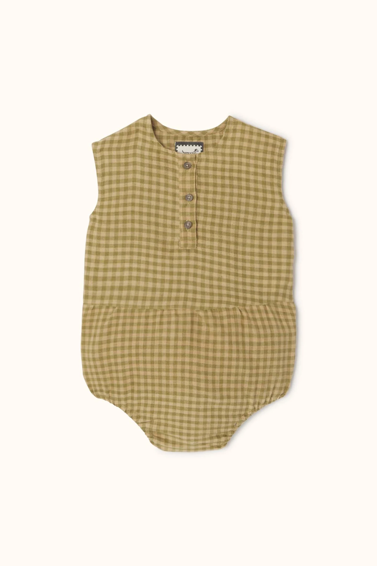Craquez pour la barboteuse RITA en khadi de coton léger, idéale pour les bébés. Son col rond et sa patte de boutonnage sur le devant avec boutons en bois facilitent l’habillage. Découpe à la taille pour une silhouette ajustée et boutons-pression à l’entrejambe pour un confort pratique lors des changes.
