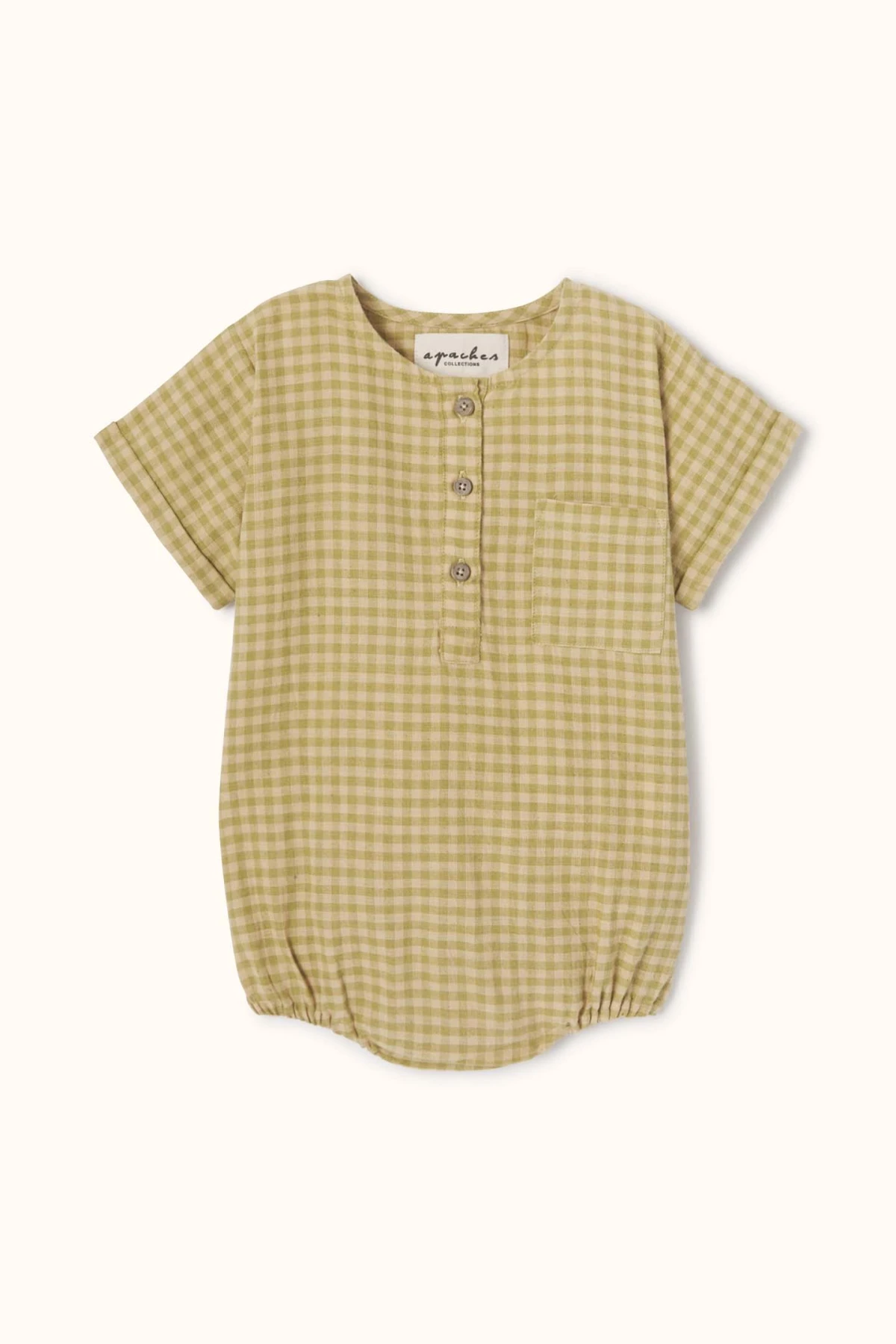 La barboteuse MANIK en khadi de coton léger assure confort et liberté de mouvement. Col rond, manches courtes à revers et coupe ample. Ouverture boutonnée sur le devant et boutons-pression à l’entrejambe facilitent l’habillage au quotidien. Idéale pour bébé, douce et pratique.