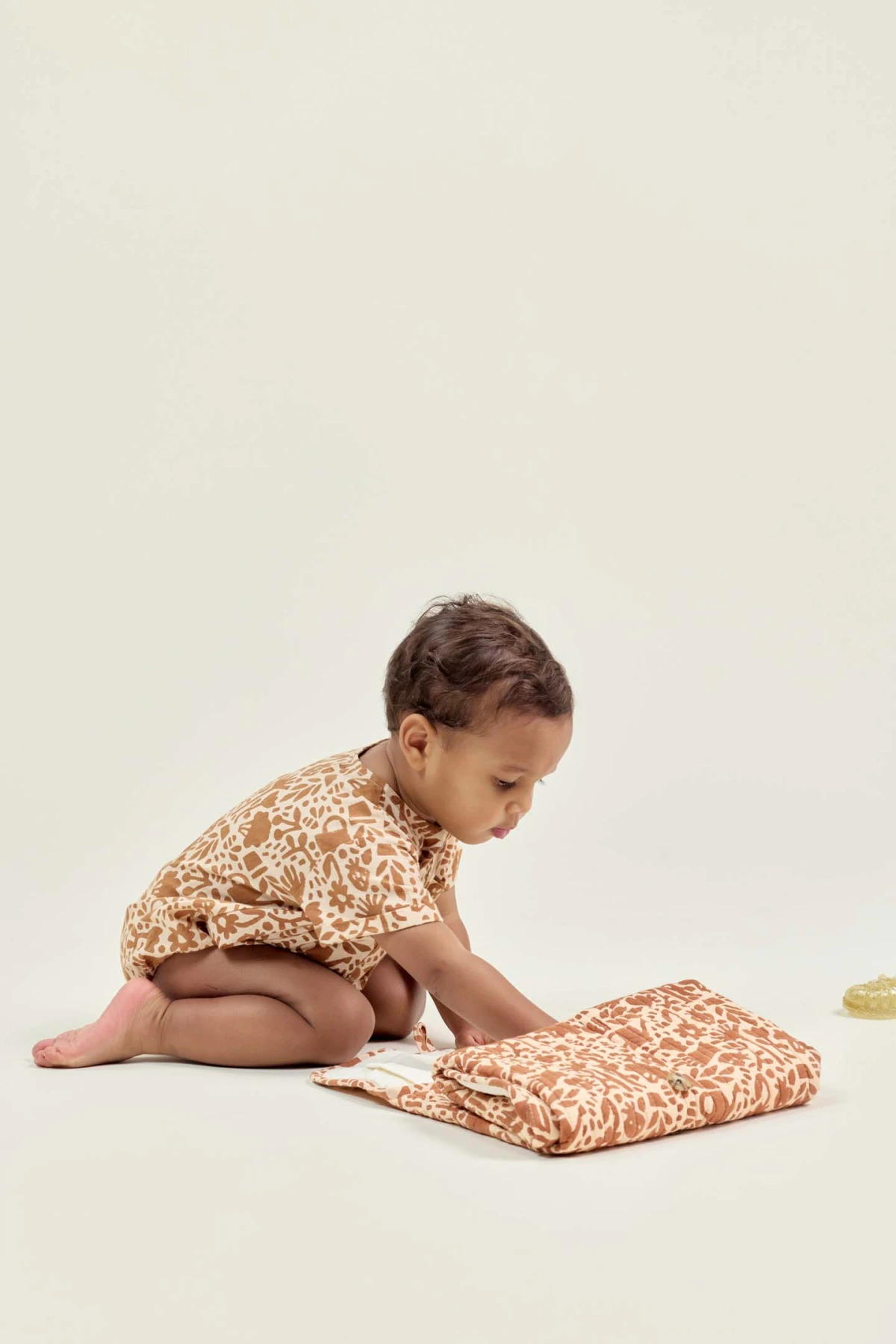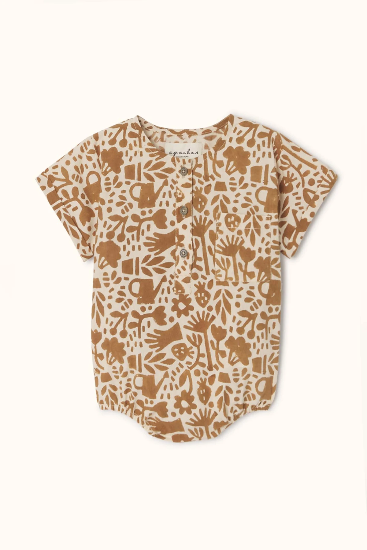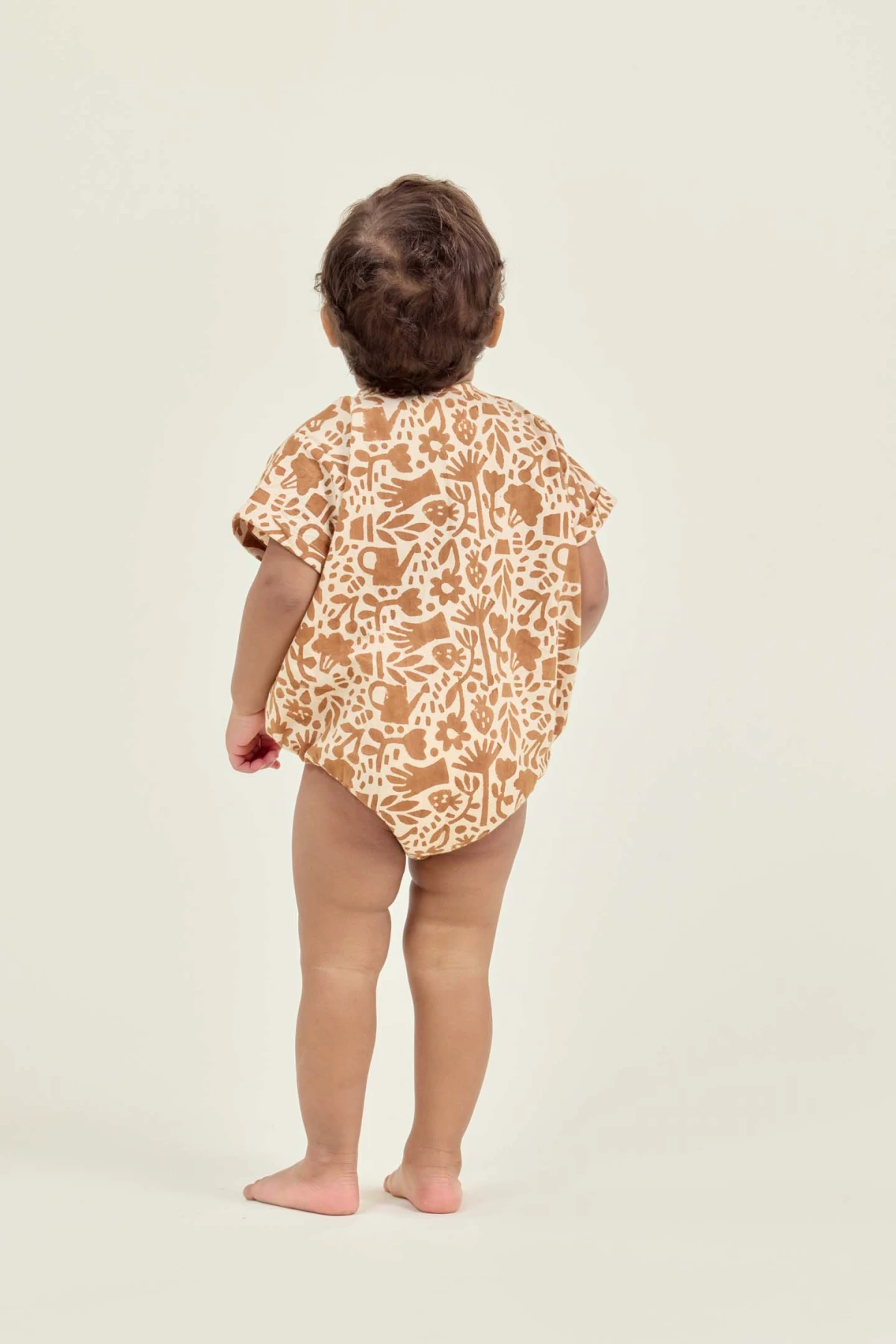 La barboteuse MANIK en coton imprimé séduit par son style et sa praticité. Col rond, manches courtes à revers et coupe ample. Ouverture boutonnée sur le devant et boutons-pression à l’entrejambe pour un habillage simple et rapide, parfaite pour les journées actives de bébé.