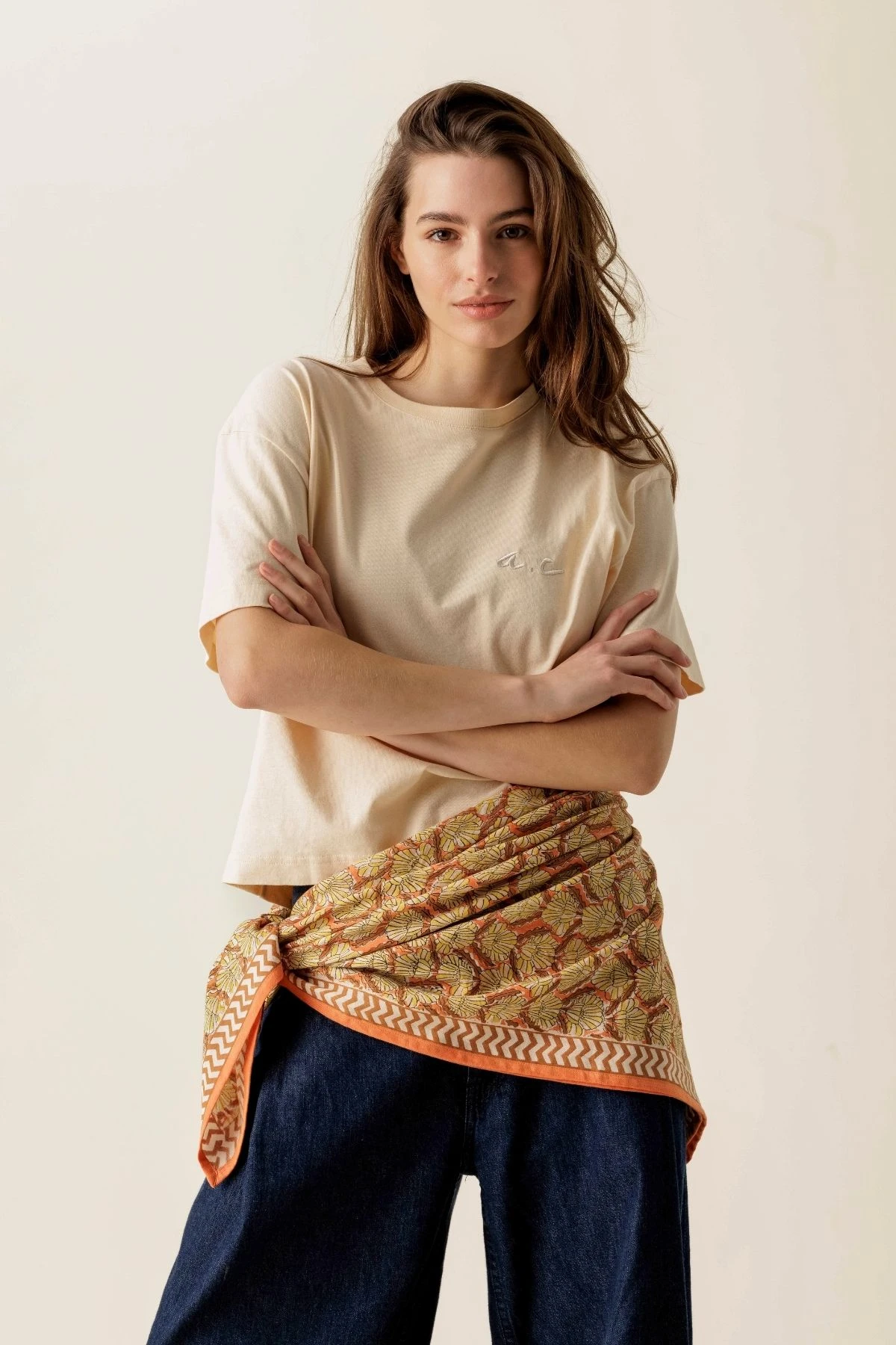 Le tee-shirt A.C séduit par sa coupe droite confortable et son style minimaliste. Broderie "A.C" délicatement placée sur la poitrine pour une touche élégante et raffinée. Un basique moderne et polyvalent, facile à porter au quotidien pour un look casual chic et tendance.