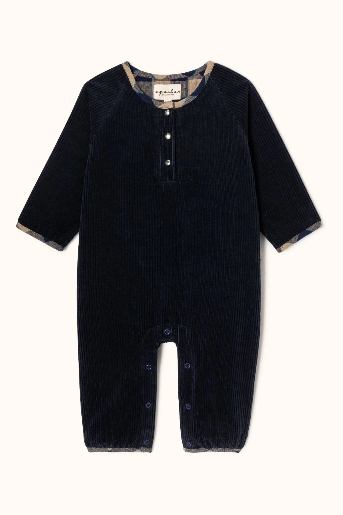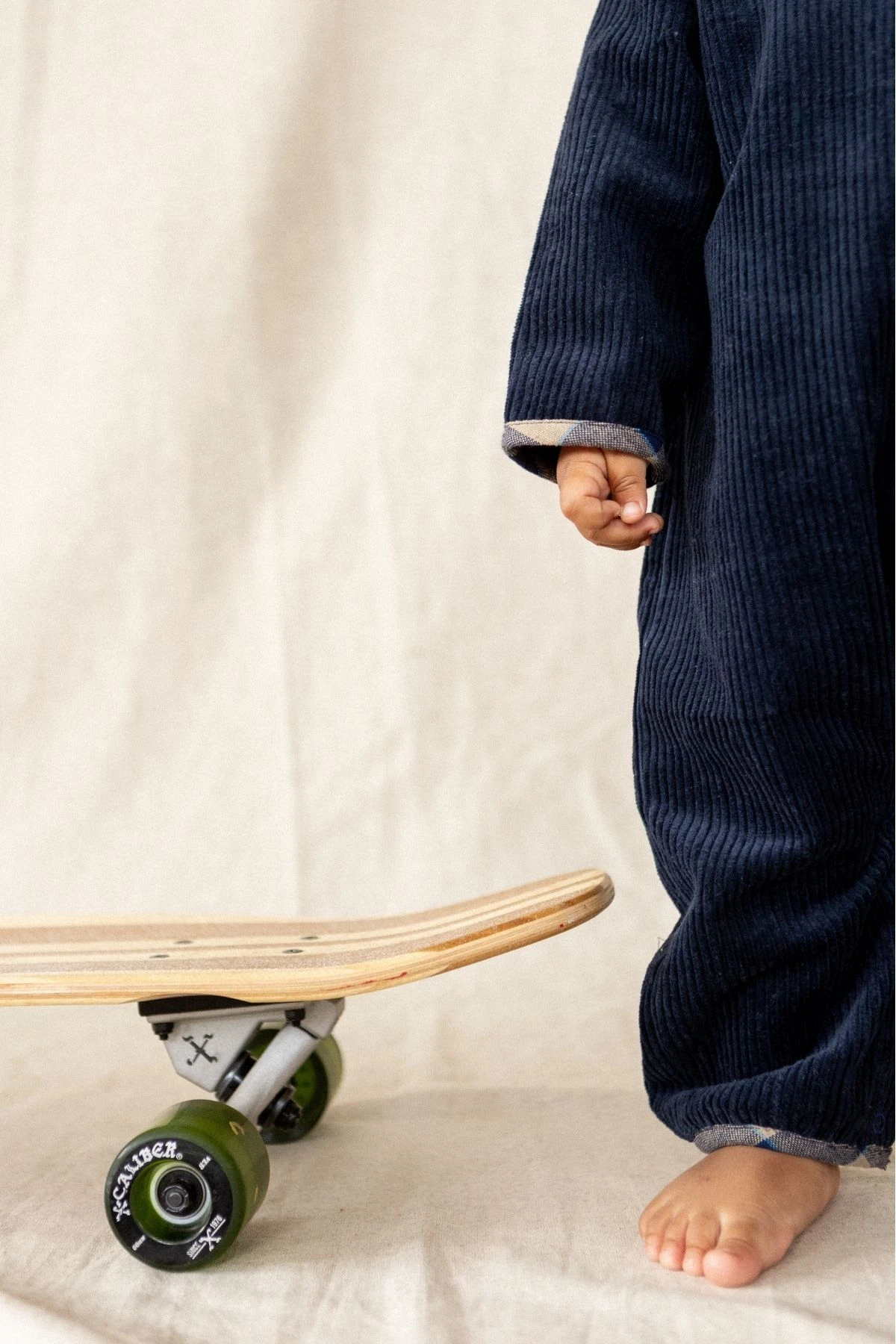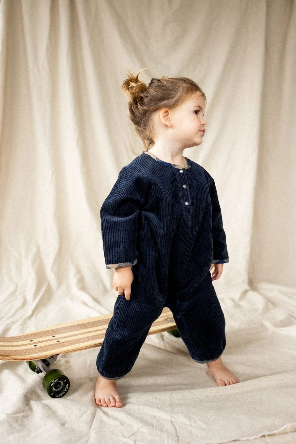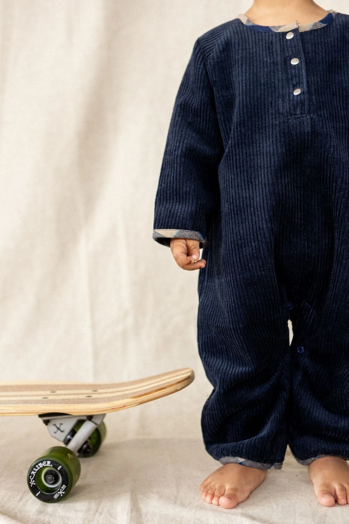 La combinaison SOLI en velours côtelé, doublée et rehaussée de biais en coton khadi, allie chaleur et confort pour la saison fraîche. Pratique, son ouverture à pressions sur le devant et à l’entrejambe facilite l’habillage de bébé. Avec ses finitions soignées, elle apporte une touche moderne et stylée en toutes circonstances.