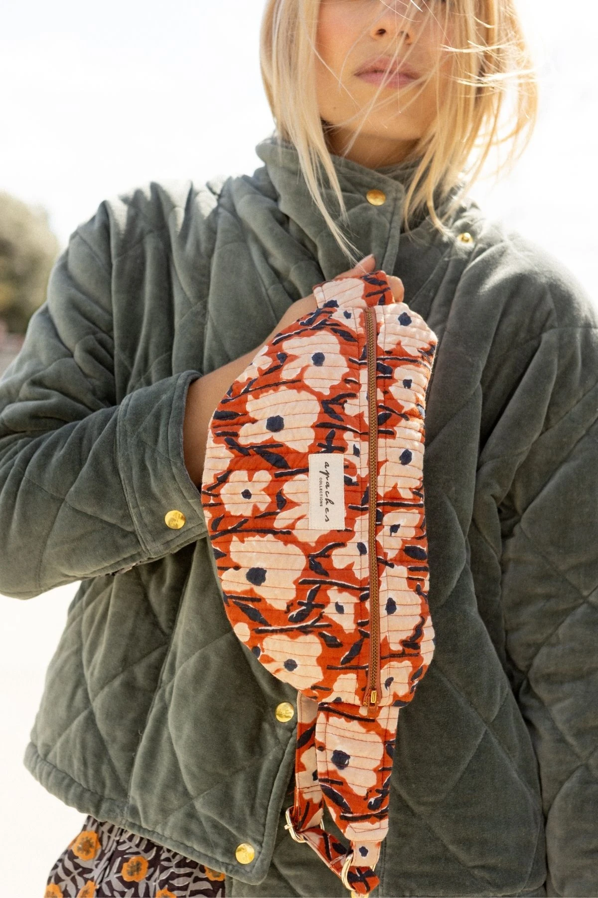 Coloré et lumineux, le big sac banane Keli DAISY BOMBAY en coton matelassé apporte une touche joyeuse à vos tenues. Spacieux et fonctionnel, il permet de transporter tous vos essentiels. À porter de différentes façons pour un style moderne et décontracté. Le détail qui fait craquer : sa version mini assortie pour des looks coordonnés.