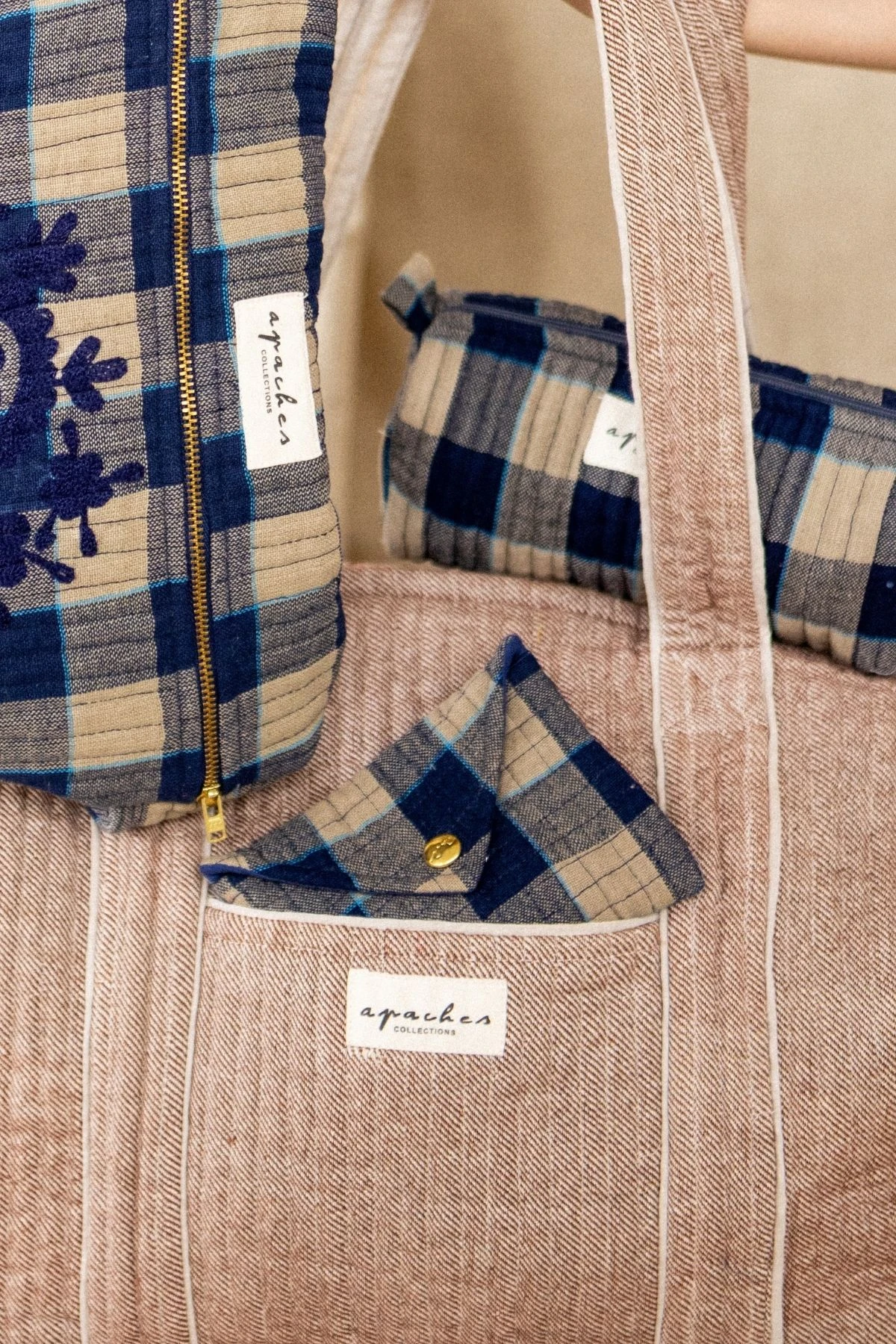 L’enveloppe Ravi KHADI se distingue par son imprimé carreaux navy d’inspiration artisanale. Compacte et astucieuse, elle est idéale pour ranger vos écouteurs, clés ou petits trésors. Glissée dans un sac, elle égaye vos journées avec son style original. Le parfait petit cadeau pratique et tendance.