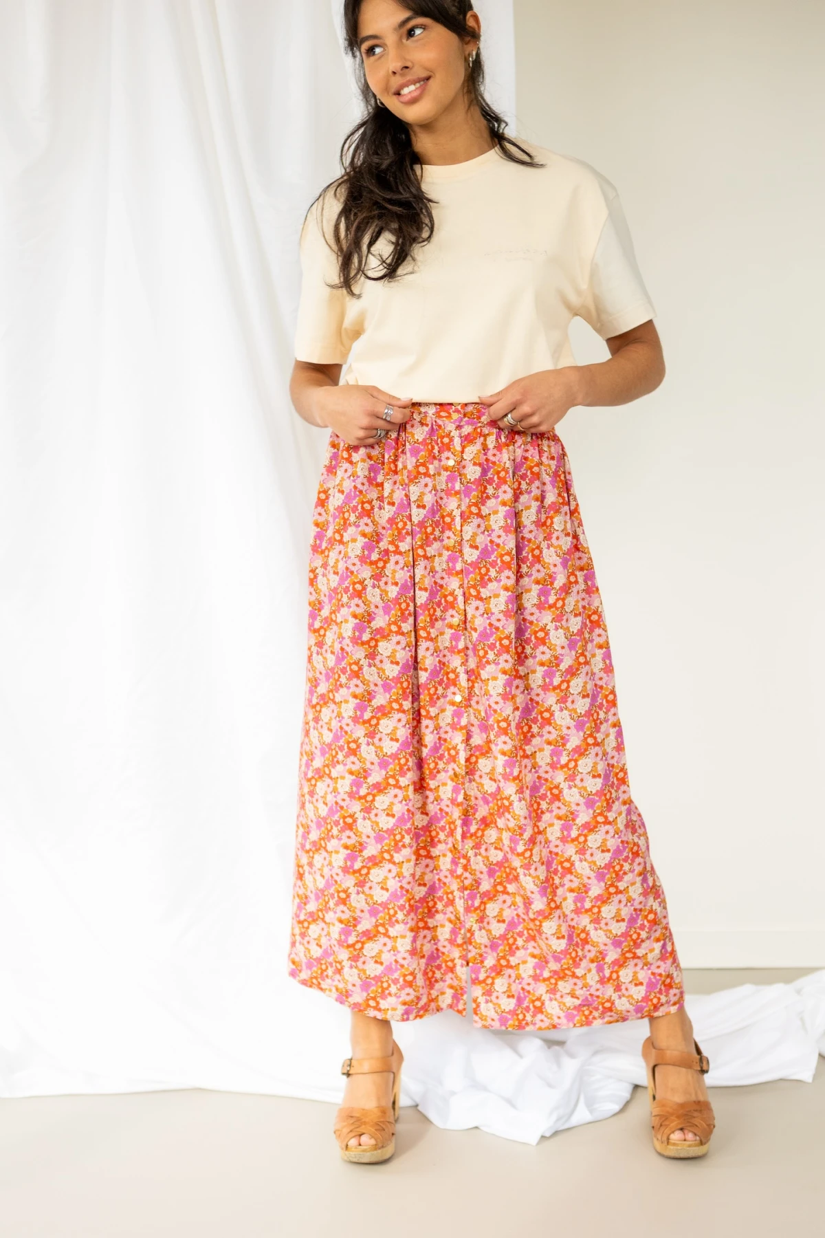 Notre jupe Neela imprimée "Camélia" Sanguine est longue, fluide et ultra agréable à porter. Idéale pour toutes les occasions, associez-la avec notre tee-shirt Apaches, une blouse ou un top sans manches pour des looks à l'infini !