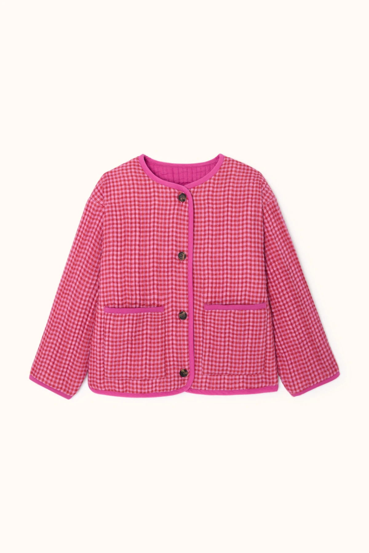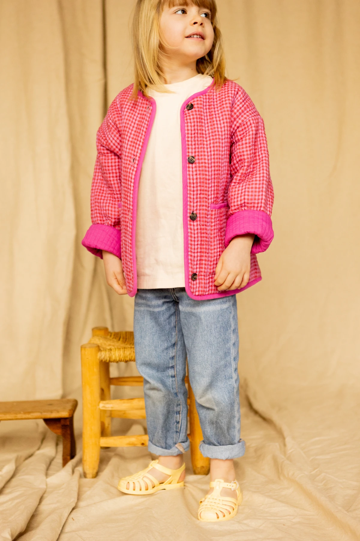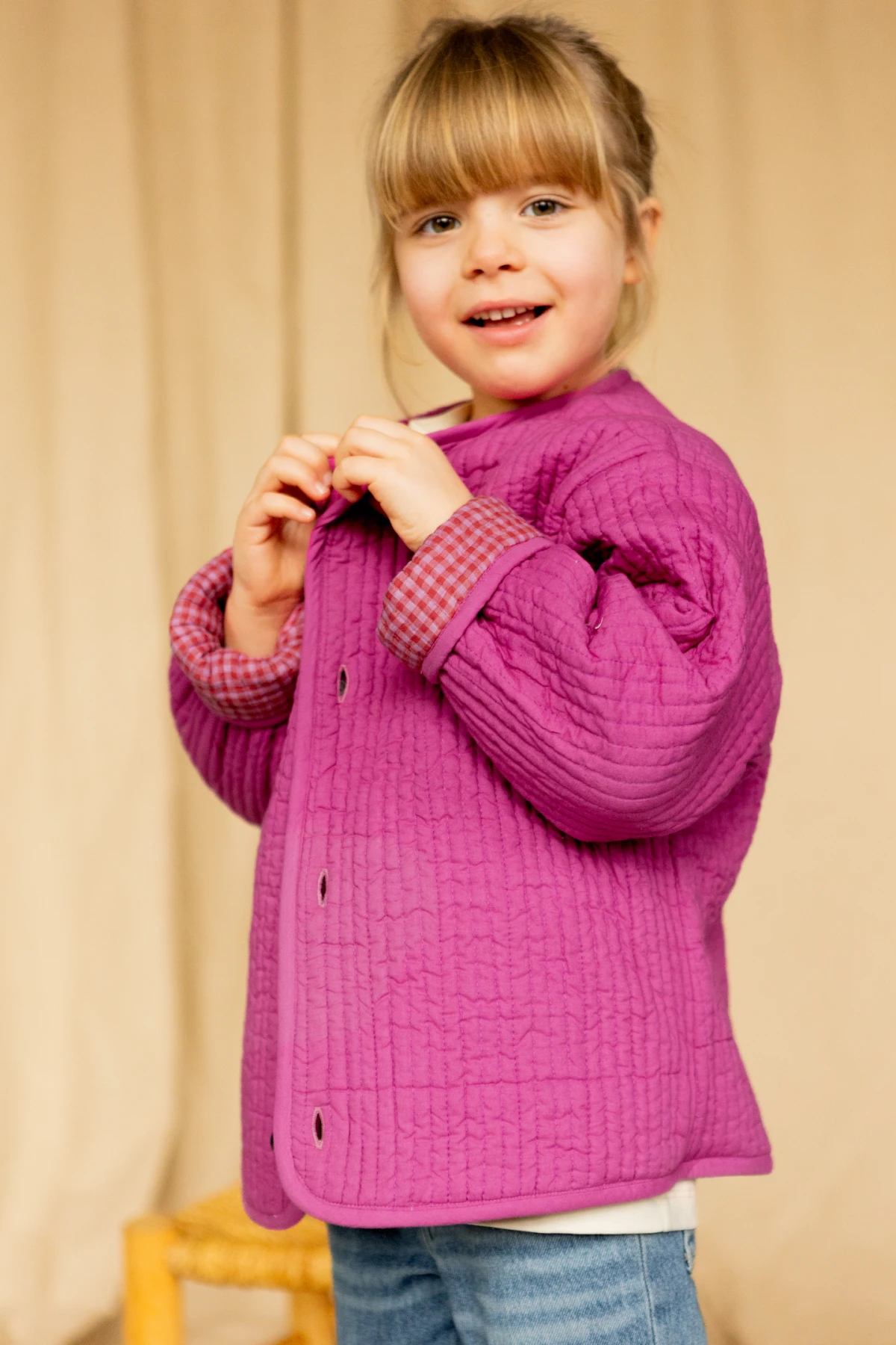 Découvrez Dhoti, notre veste matelassée à la coupe confortable. Réversible, les filles pourront la porter une fois côté uni fuchsia, une fois côté khadi. Elle s'adaptera à toutes les occasions, à porter à l'infini avec toutes les tenues !