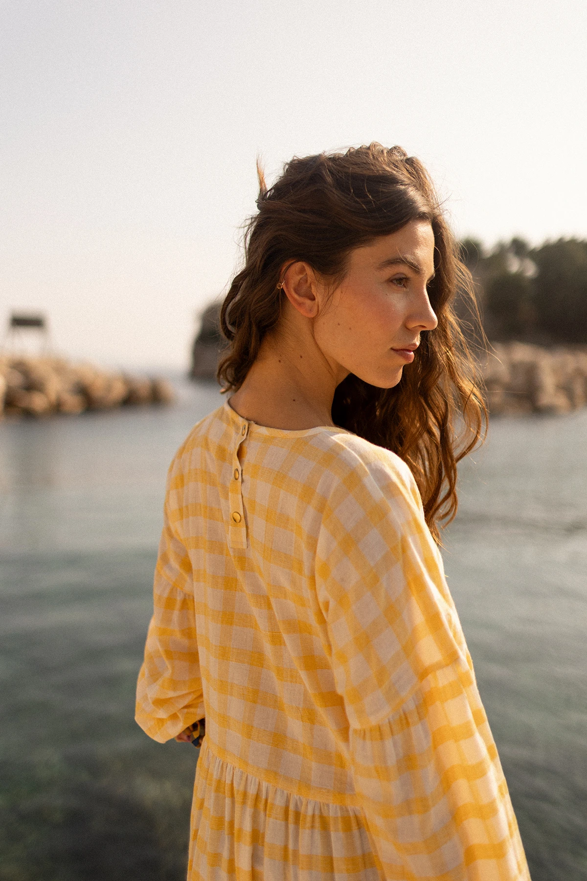 La robe ROCHANA en khadi de coton tissé teint indien allie authenticité et confort. Sa coupe longue et ample assure élégance et liberté de mouvement, tandis que les empiècements à la taille et au buste structurent la silhouette. Épaules basses et fronces délicates aux manches apportent volume et texture raffinée.