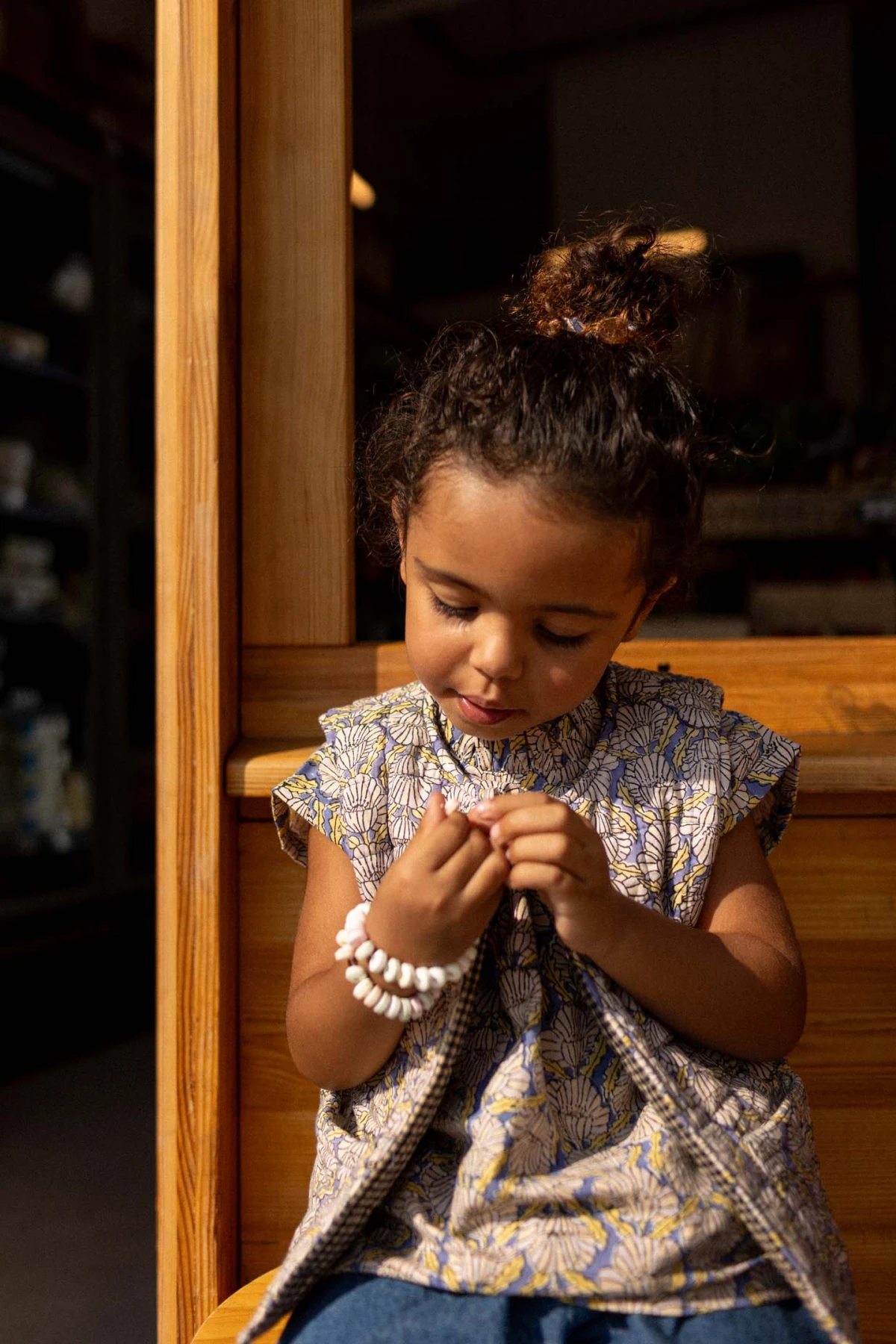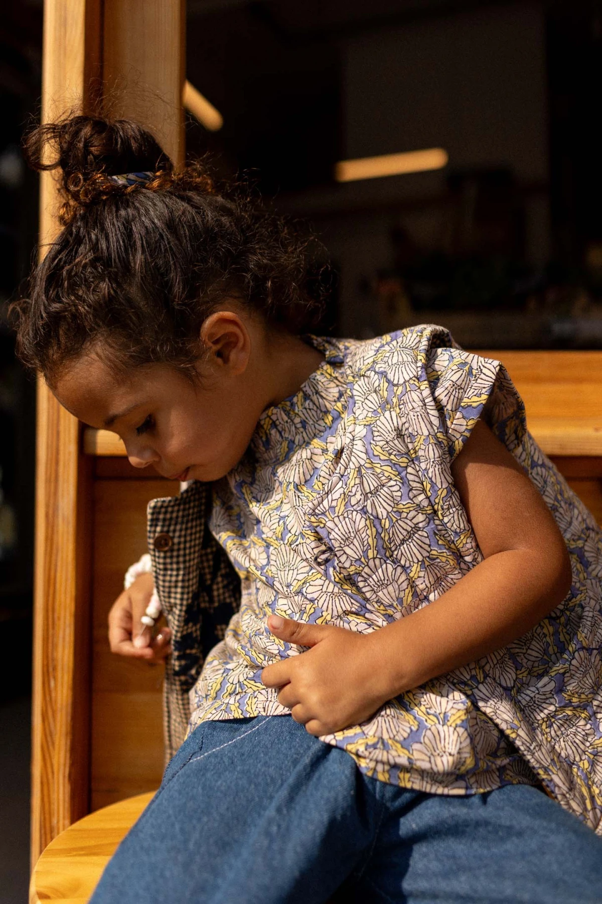Découvrez le gilet SAKARU sans manches, réversible et matelassé, doublé en khadi de coton. Pratique et élégant, il propose des poches plaquées côté imprimé et une broderie décorative côté khadi. Sa fermeture à l’encolure par bouton en bois allie style et fonctionnalité au quotidien.