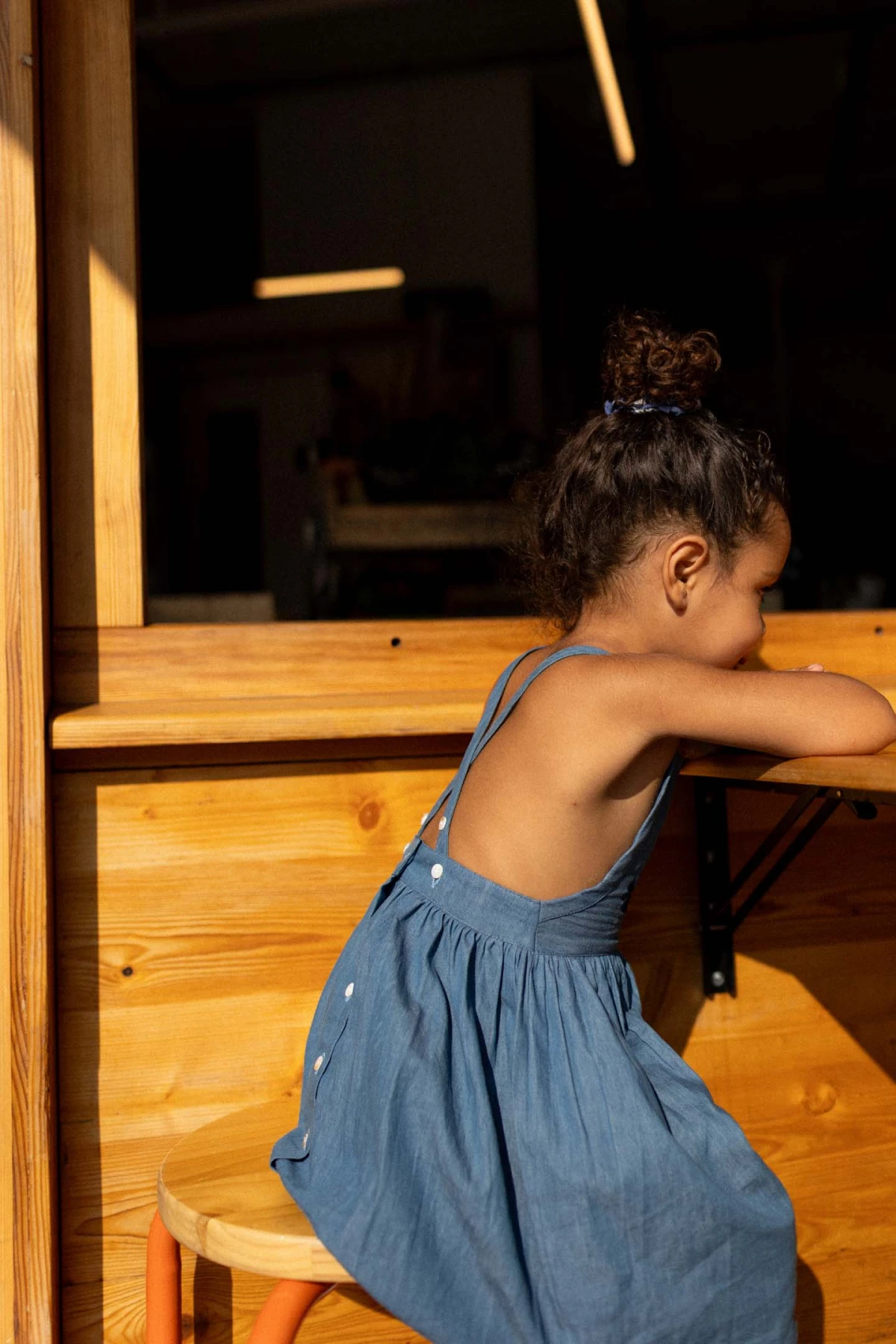 Adoptez la robe trapèze RIVANA en chambray de coton, au style délicat et intemporel. Sa coupe genoux et ses bretelles réglables à boutons en bois offrent confort et ajustement parfait. L’empiècement type « bavoir », les fronces légères et la broderie centrale sur le buste apportent une touche raffinée à cette pièce pleine de charme.