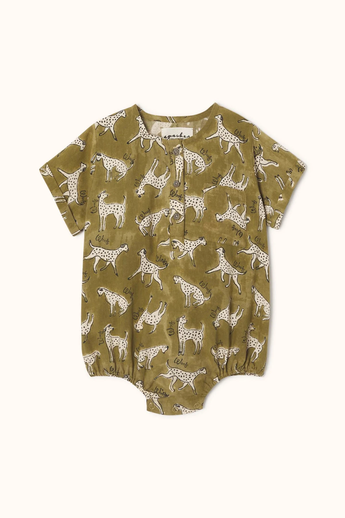 Craquez pour la barboteuse MANIK en coton imprimé, confortable et tendance. Col rond, manches courtes à revers et coupe ample pour bouger librement. Ouverture boutonnée sur le devant et boutons-pression à l’entrejambe pour un enfilage facile au quotidien. Idéal pour tous les looks de bébé.