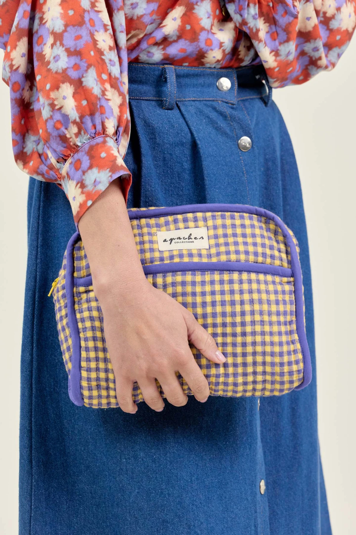 Avec son motif à carreaux décliné dans des tons lumineux, la trousse RAHANA Checkmate Wheat mise sur un style graphique et chaleureux. Légère et fonctionnelle, elle permet d’organiser maquillage et accessoires avec élégance.