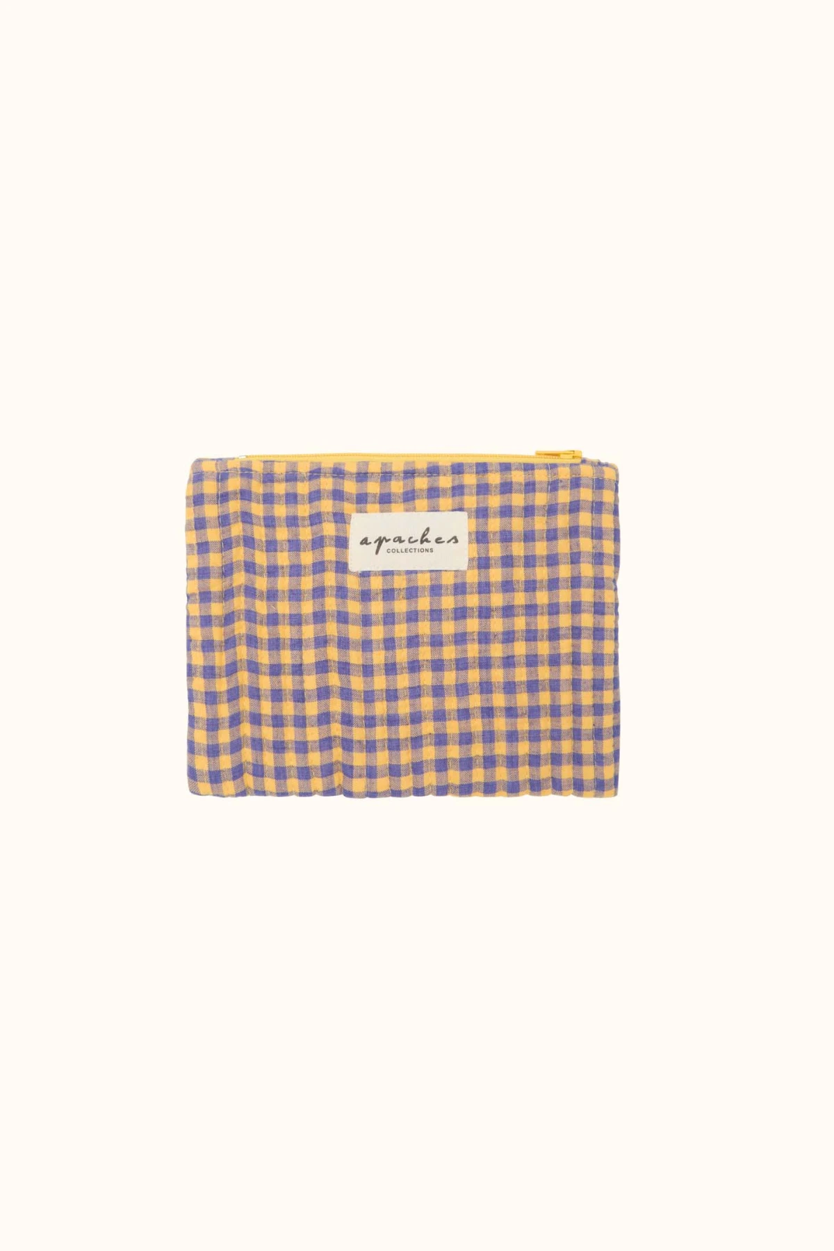 La mini pochette MANA Checkmate Wheat adopte des carreaux aux tons doux et lumineux. Son imprimé graphique s’associe à un format compact, idéal pour organiser vos essentiels avec élégance.