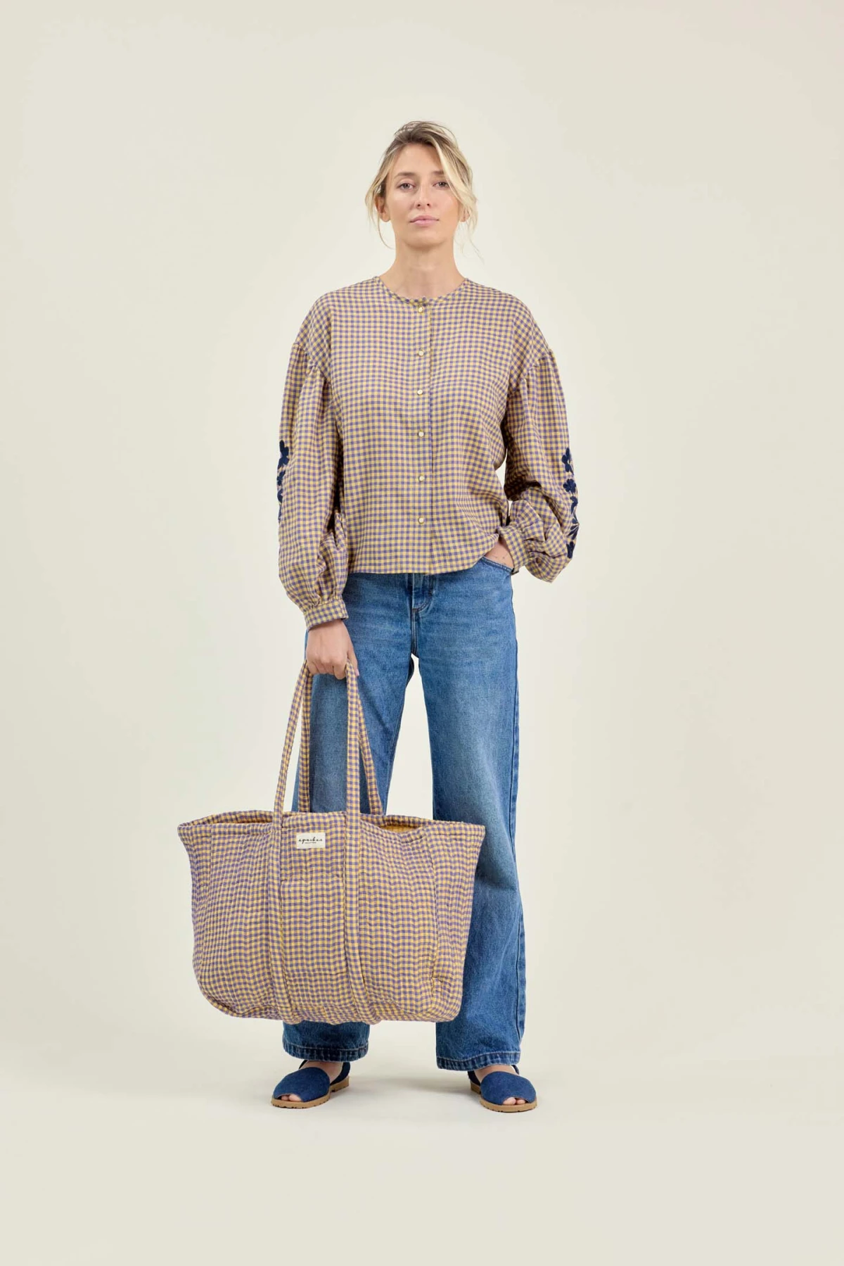 Le cabas SAMBA Checkmate Wheat mise sur des carreaux aux tons doux et lumineux. Son design graphique et son grand format en font un indispensable du quotidien.