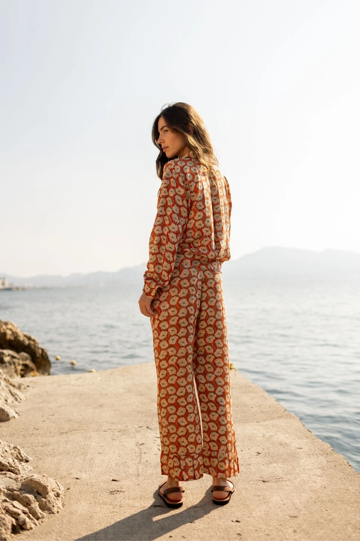 Craquez pour le pantalon PADMA en satin de viscose, confortable et léger. Sa coupe droite s’évase légèrement au bas grâce à un volant, apportant fluidité et mouvement. La taille se ferme par ceinture avec braguette et bouton, tandis que les poches italiennes à l’avant allient style et praticité au quotidien.
