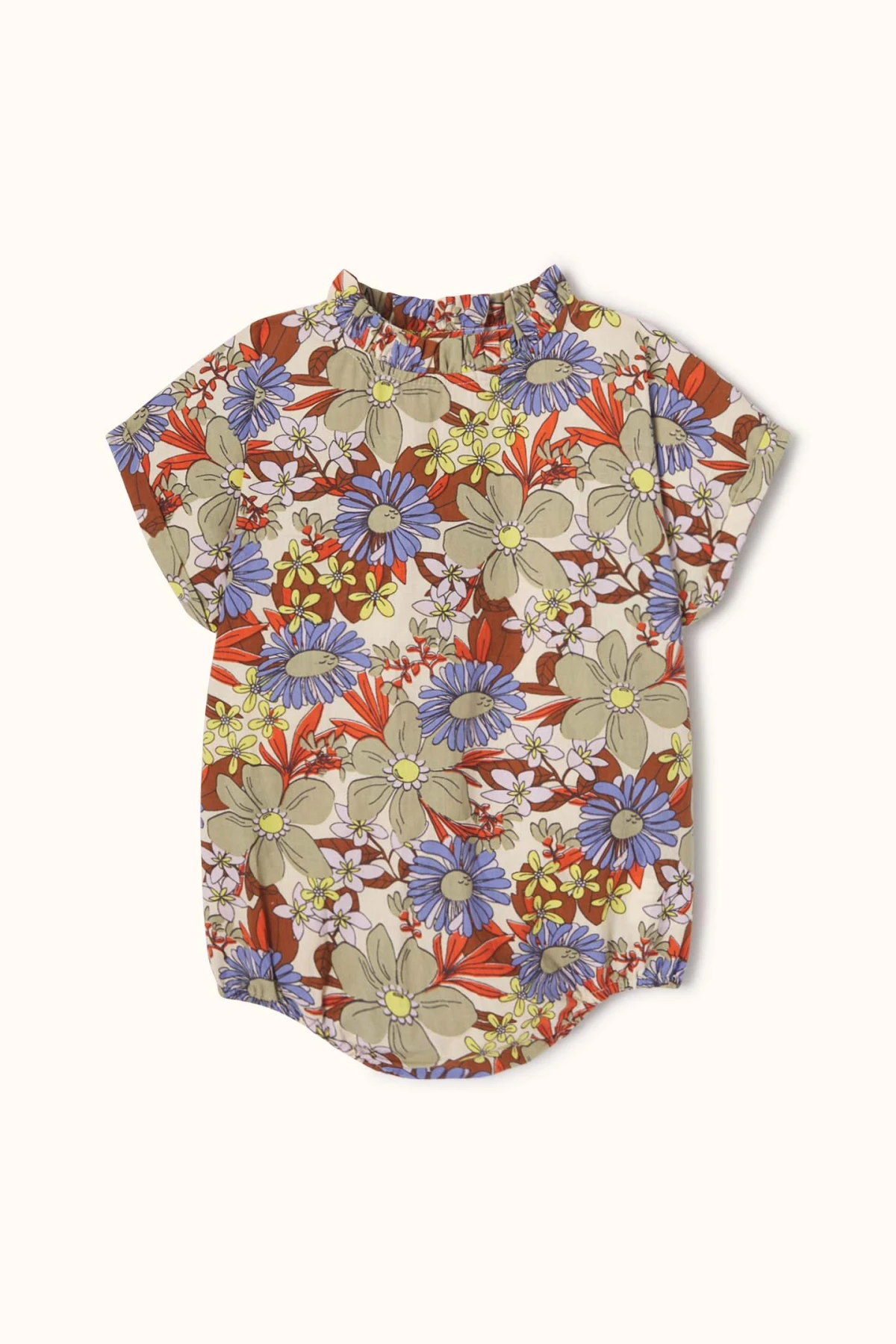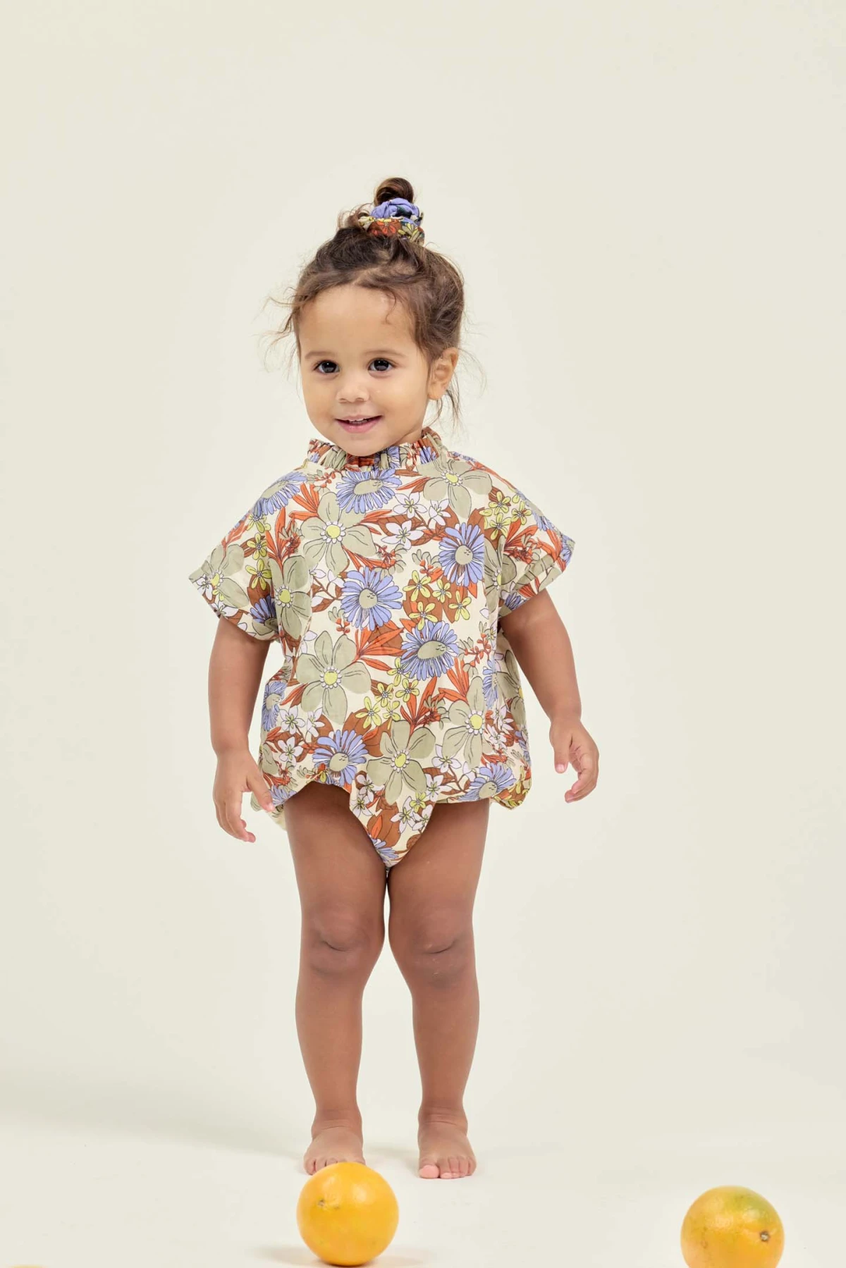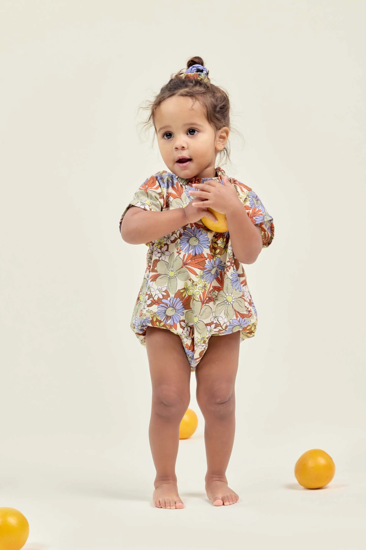 La barboteuse KALAK en coton imprimé allie praticité et élégance. Sans manches et col volanté, elle se ferme par une ouverture boutonnée sur le devant et des boutons-pression à l’entrejambe. Sa coupe ample permet à bébé de bouger librement tout en restant stylé.