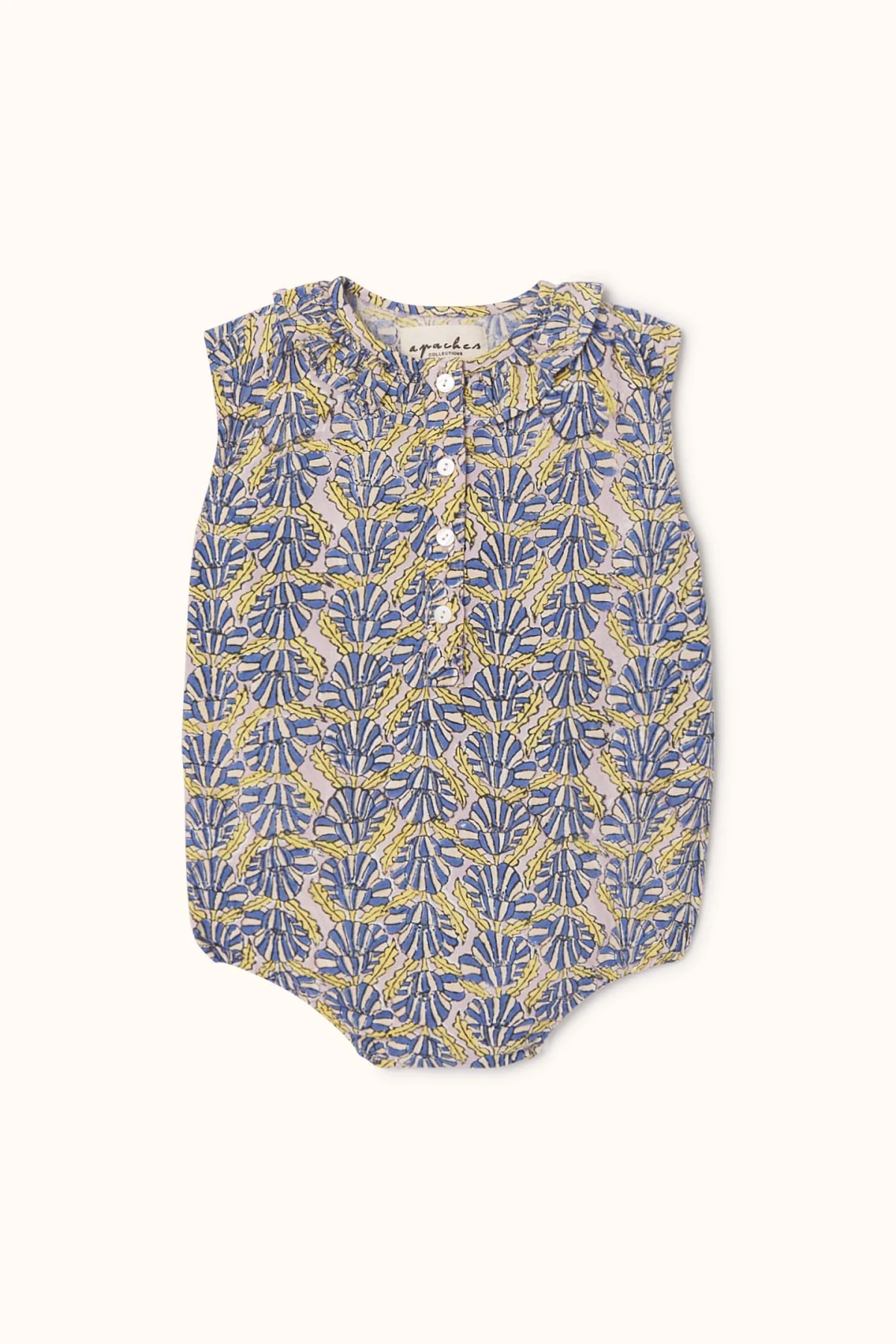 Craquez pour la barboteuse JASMINE en coton imprimé, légère et agréable à porter. Col volanté, style débardeur et ouverture boutonnée sur le devant pour un enfilage facile. Boutons-pression à l’entrejambe et coupe ample garantissent confort et liberté de mouvement pour bébé.
