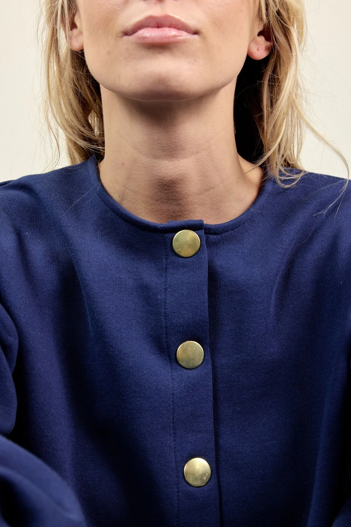 Le gilet BIMY combine confort et style avec son molleton épais et sa coupe confortable. Patte de boutonnage avec gros boutons-pression dorés, col rond, manches bouffantes resserrées par bord-côte. Son coloris uni moderne permet de l’associer facilement à toutes vos tenues pour un look chic et décontracté.