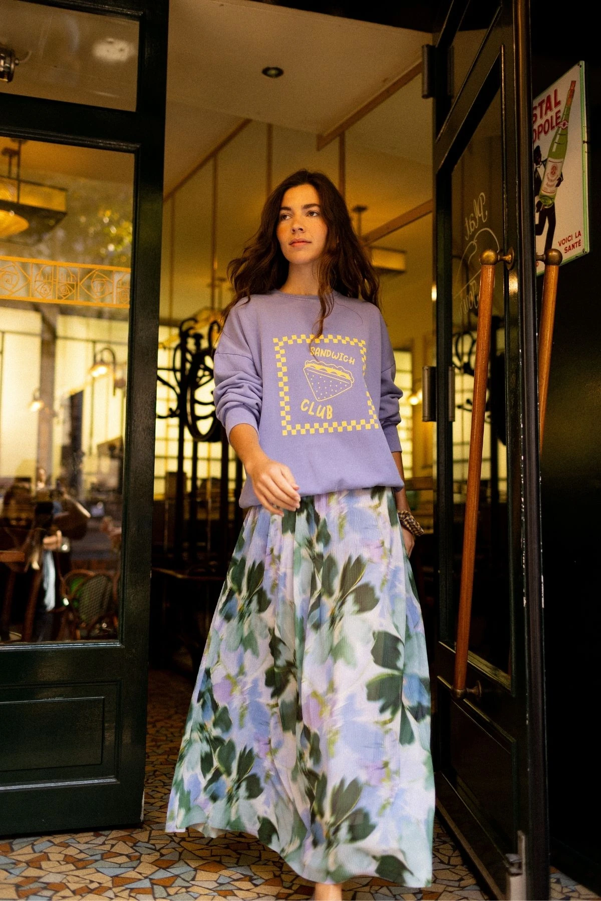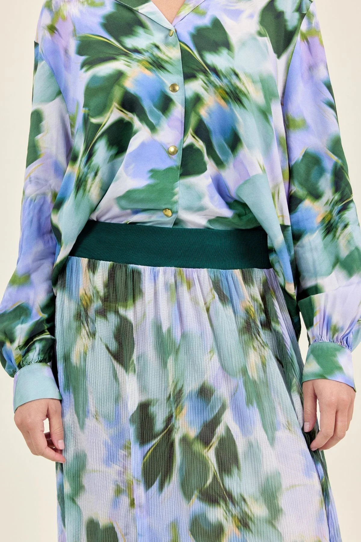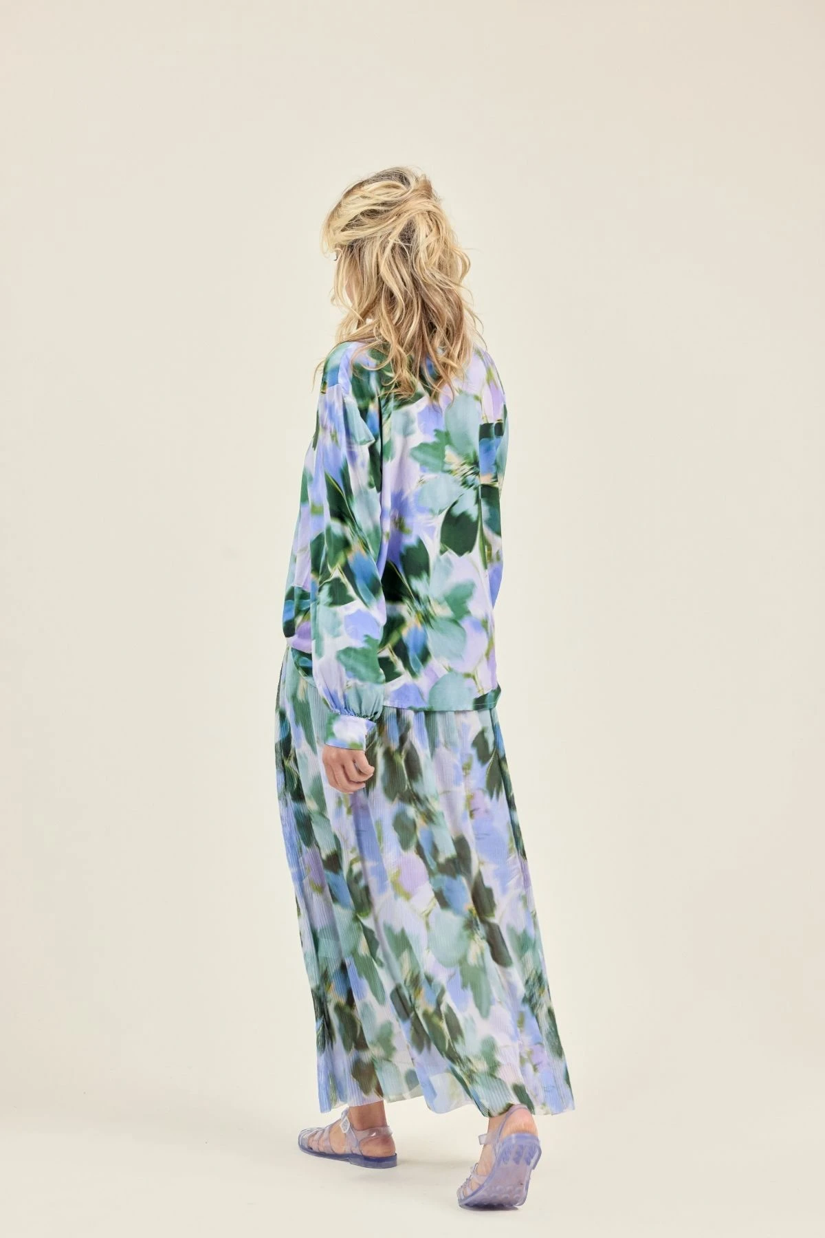 La jupe longue JANYA plissée séduit par son tissu fluide imprimé all-over légèrement transparent, entièrement doublée pour confort et opacité. Ceinture en bord-côte uni contrastant pour une touche moderne et sportive. L’alliance du plissé et de la ceinture apporte élégance et style contemporain à vos tenues.