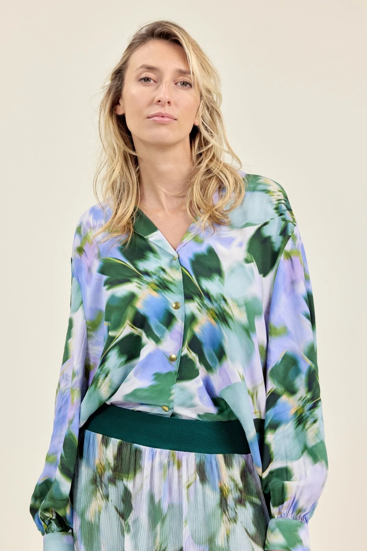 Fluide et légère, la chemise BALAJI en viscose imprimée séduit par son col tailleur structuré et sa fermeture à boutons-pression. Les manches longues froncées aux poignets et l’ourlet surpiqué garantissent confort, style et durabilité, pour un look féminin chic et facile à porter au quotidien.