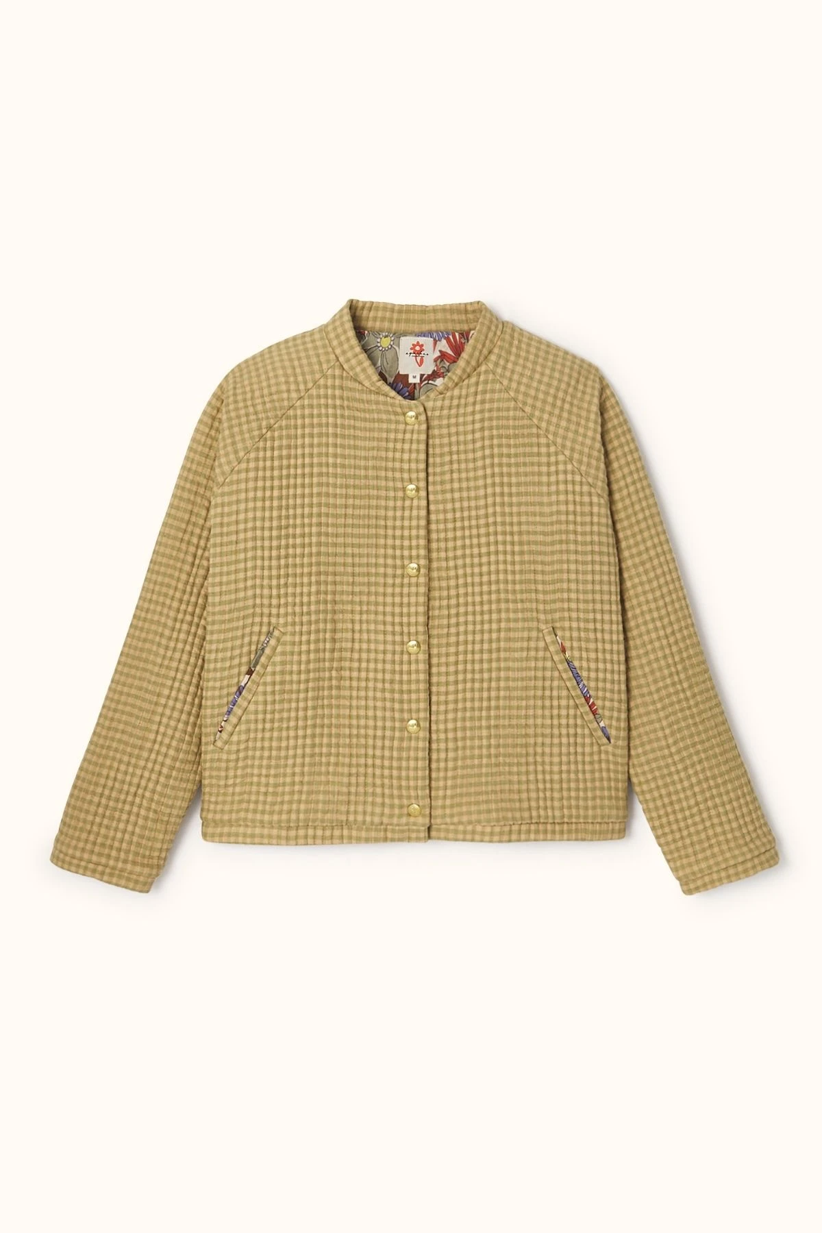 La veste HARI en khadi de coton se distingue par son tissage artisanal et son allure contemporaine. Sa coupe teddy et ses manches raglan offrent une belle liberté de mouvement, tandis que sa doublure imprimée et ses pressions soignées apportent une touche d’élégance décontractée.