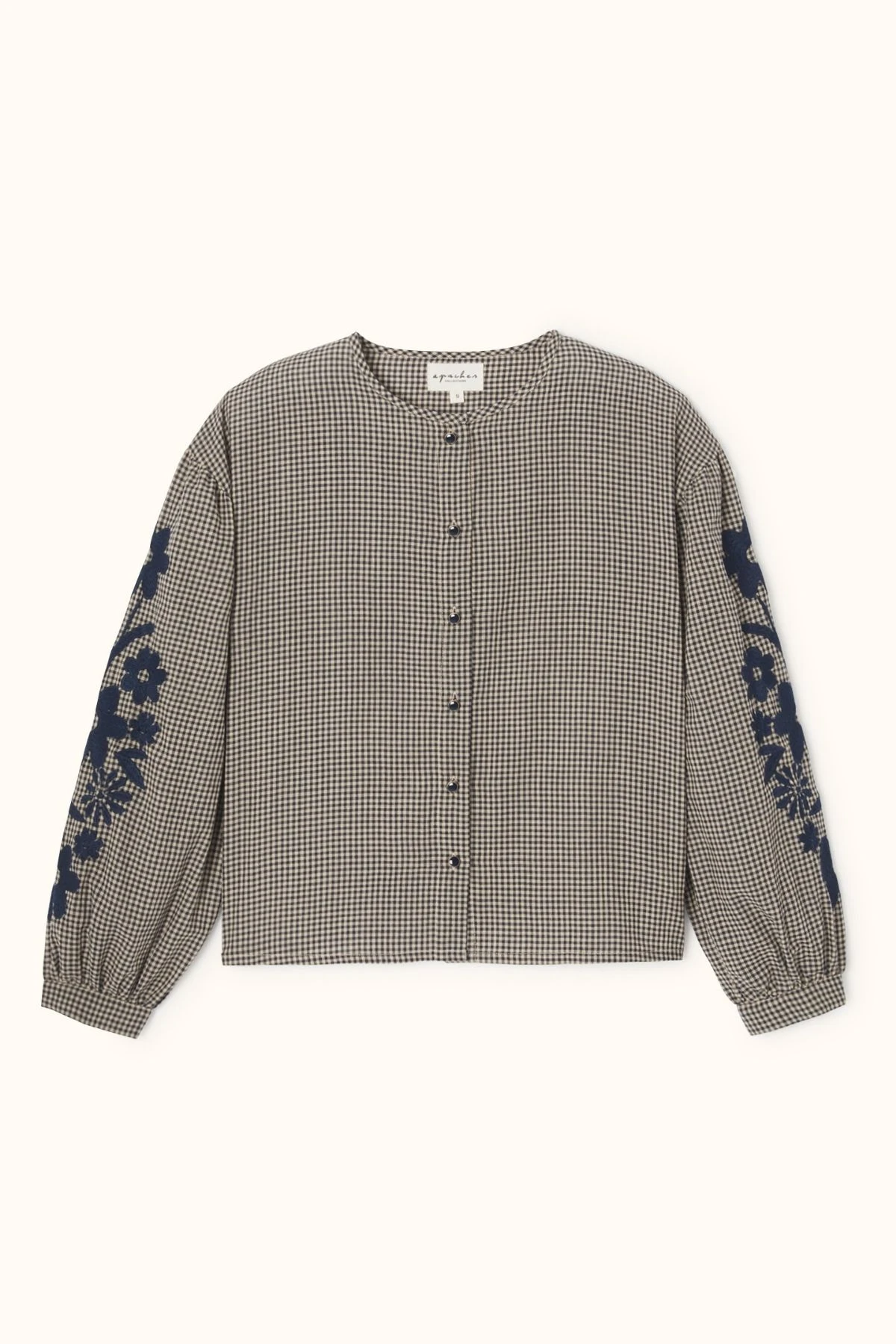 Confectionnée en khadi de coton tissé teint Indien, la blouse BINU allie tradition et style. Ses broderies raffinées ornent les manches tandis que la patte de boutonnage sur le devant assure une ouverture pratique. Les épaules légèrement froncées et les manches longues à poignets simples complètent ce modèle élégant et confortable.