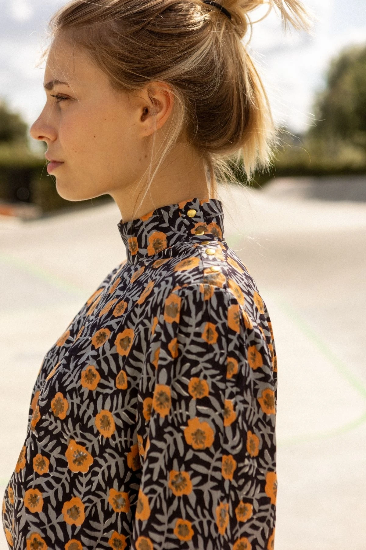 Élégante et raffinée, la blouse BHUMINE en satin de viscose charme par sa fluidité, sa légèreté et ses reflets délicats. Son imprimé fleuri aux teintes douces, pensé pour l’automne-hiver, s’associe à un col montant boutonné et à des manches longues, pour une silhouette féminine et intemporelle.